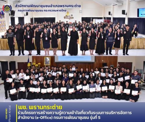 พช.พรานกระต่าย ร่วมโครงการสร้างความรู้ความเข้าใจเกี่ยวกับระบบการบริหารจัดการสำนักงาน (e-Office) กรมการพัฒนาชุมชน รุ่นที่ 5