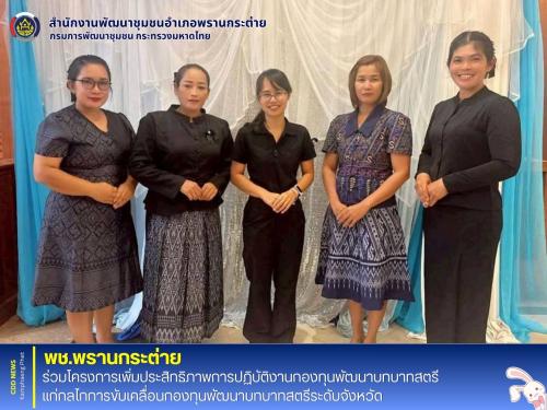 สำนักงานพัฒนาชุมชนอำเภอพรานกระต่าย นำโดย นางสาววจีพร รงค์ทอง พัฒนาการอำเภอพรานกระต่าย มอบหมายให้ นางสาวญตะวี สันติภิวัฒน์ นักวิชาการพัฒนาชุมชนชำนาญการ พร้อมด้วยคณะทำงานขับเคลื่อนกองทุนพัฒนาบทบาทสตรีตำบล/จังหวัด เข้าร่วมโครงการเพิ่มประสิทธิภาพการปฏิบัติงานกองทุนพัฒนาบทบาทสตรีแก่กลไกการขับเคลื่อนกองทุนพัฒนาบทบาทสตรีระดับจังหวัด เพื่อทบทวนบทบาทหน้าที่คณะทำงานขับเคลื่อนกองทุนพัฒนาบทบาทสตรีตำบล/จังหวัด, การจัดทำโครงการเพื่อขอรับการสนับสนุนประเภทเงินทุนหมุนเวียน (เงินกู้), ประเภทเงินอุดหนุน (ทุนให้เปล่า) และการจัดทำแผนปฏิบัติการติดตามหนี้ค้างชำระของสมาชิกกองทุนพัฒนาสตรี