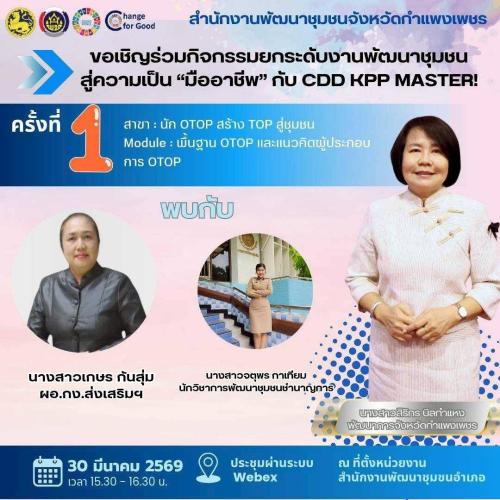 สำนักงานพัฒนาชุมชนอำเภอพรานกระต่าย นำโดย นางสาววจีพร รงค์ทอง พัฒนาการอำเภอพรานกระต่าย มอบหมายให้ นางสาวปุญญิศา เพสอน นักวิชาการพัฒนาชุมชนปฏิบัติการ และ นางสาวจิราภรณ์ อินถา นักวิชาการพัฒนาชุมชนปฏิบัติการ ร่วมกิจกรรม ยกระดับงานพัฒนาชุมชนสู่ความเป็น "มืออาชีพ" กับ CDD KPP MASTER! สาขา : นัก OTOP สร้าง TOP สู่ชุมชน พื้นฐาน OTOP Module : แนวคิดสู่ผู้ประกอบการ OTOP เพื่อให้สามารถนำความรู้จากการเรียนรู้ผ่านระบบทางออนไลน์พัฒนากลุ่มผู้ผลิตผู้ประกอบการ OTOP สร้างรายได้สร้างเศรษฐกิจชุมชน