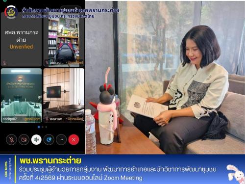 พช.พรานกระต่าย ร่วมประชุมผู้อำนวยการกลุ่มงาน พัฒนาการอำเภอและนักวิชาการพัฒนาชุมชน ครั้งที่ 4/2569 ผ่านระบบออนไลน์ Zoom Meeting