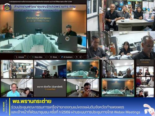 พช.พรานกระต่าย ร่วมประชุมคณะกรรมการเครือข่ายกองทุนแม่ของแผ่นดินจังหวัดกำแพงเพชร และเจ้าหน้าที่พัฒนาชุมชน ครั้งที่ 1/2569 ผ่านระบบการประชุมทางไกล Webex Meetings