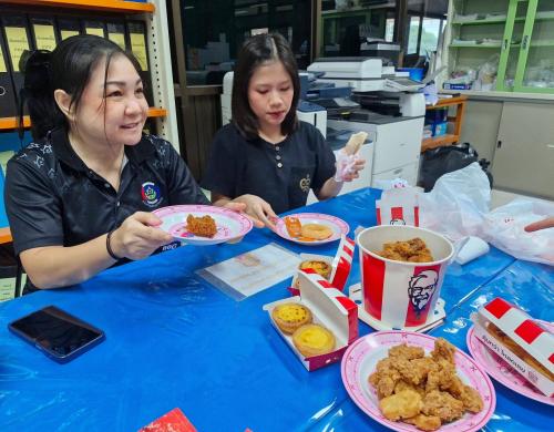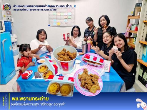 สำนักงานพัฒนาชุมชนอำเภอพรานกระต่าย นำโดย นางสาววจีพร รงค์ทอง พัฒนาการอำเภอพรานกระต่าย รับประทานอาหารมื้อกลางวัน KFC ร่วมกันระหว่างบุคลากรภายในสำนักงานพัฒนาชุมชนอำเภอพรานกระต่าย เป็นการสร้างความสัมพันธ์การช่วยเหลือเกื้อกูล สร้างความรักความสามัคคีนำไปสู่องค์กรแห่งความสุข "สร้างสุข ลดทุกข์"